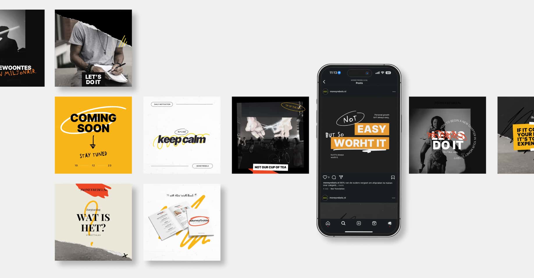 MoneyRebels wilde hun oorspronkelijke rebelse karakter behouden, maar dit verder doorontwikkelen naar een stijl die ook aansluit bij onderwijsprofessionals. Daarnaast zochten ze een visuele identiteit die houvast biedt én ruimte laat om zelf door te bouwen aan hun merk.